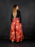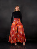 "High-waist, flowy A-line palazzo pants with pockets, crafted from 100% cotton in vibrant, unique tie-dye patterns."