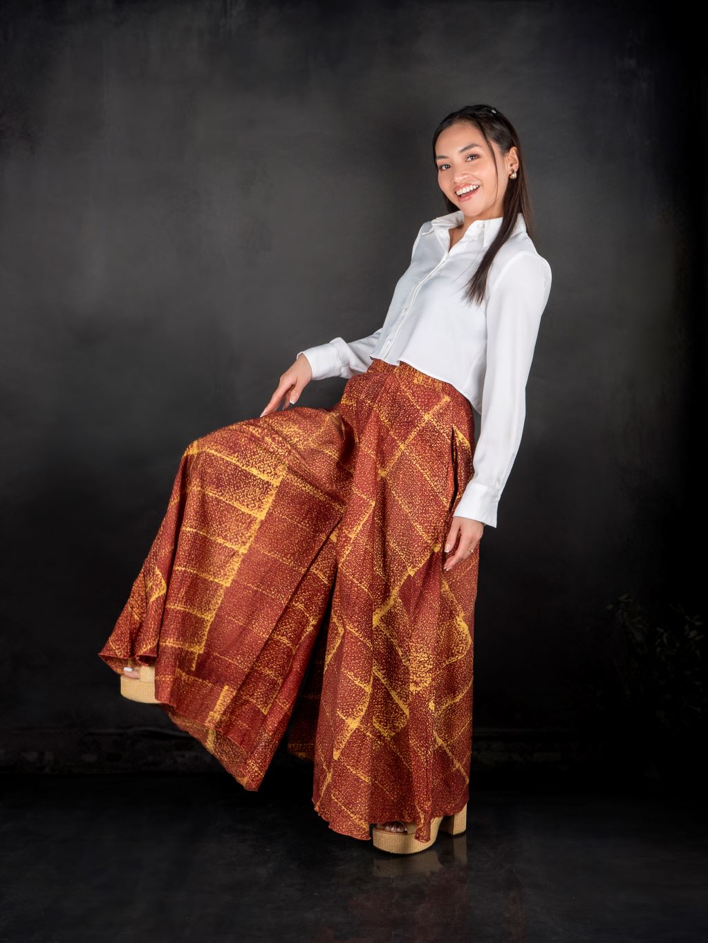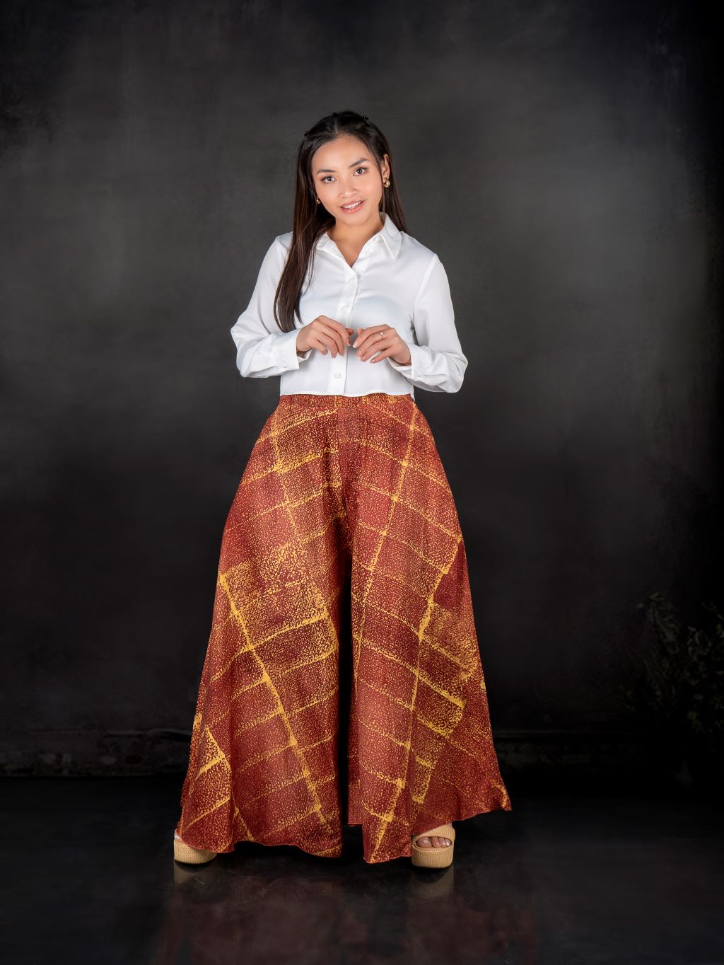 "High-waist, flowy A-line palazzo pants with pockets, crafted from 100% cotton in vibrant, unique tie-dye patterns." -