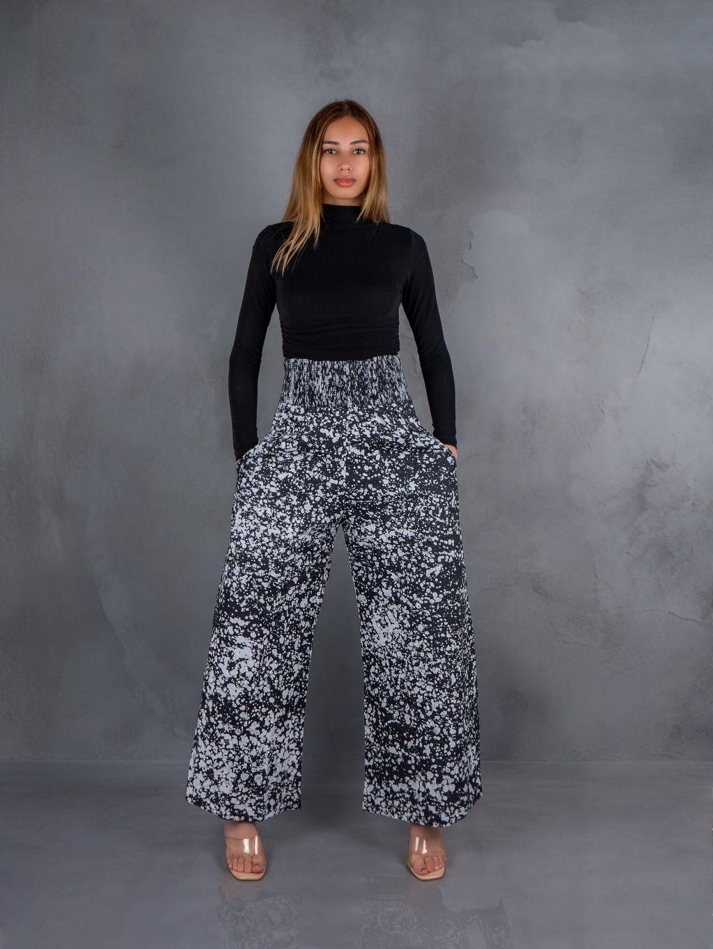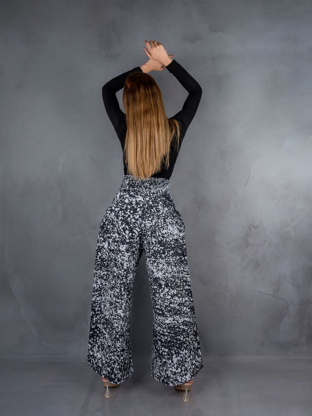 "High-waist, straight-cut palazzo pants with pockets, made from 100% cotton; each pair is uniquely colored to define your silhouette with comfort."